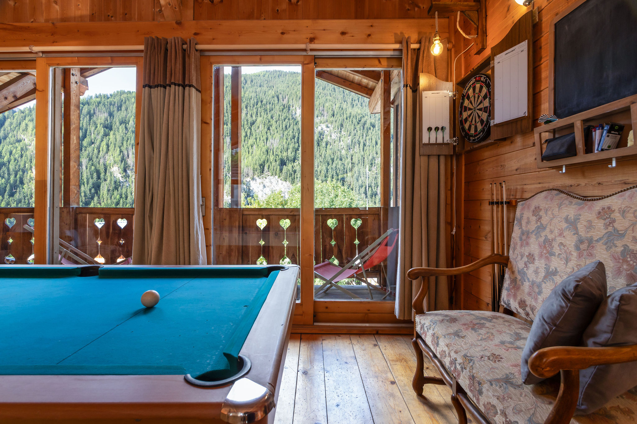 The chalet is detached, spread over three floors, and can accommodate up to 14 people. There are 6 bedrooms, each with its own bathroom. Facilities include a ski room with heated boot dryers, a sauna, and balconies off the living room and games room.